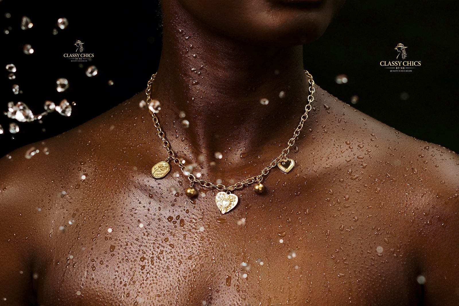 A water resistance charm stainless steel heart necklace & bracelet.