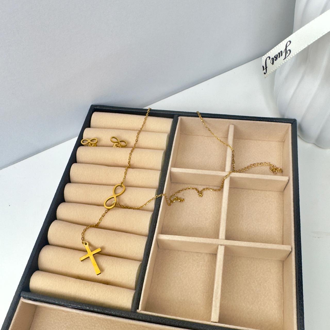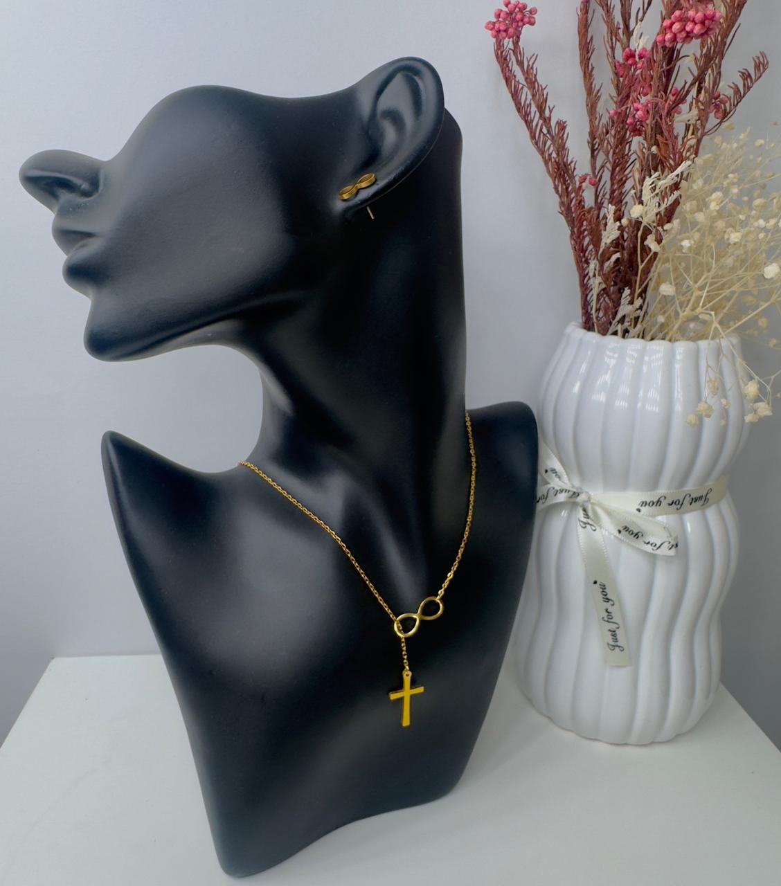 This delicate gold-tone necklace features a refined chain adorned with meaningful charms, including a polished infinity symbol and a classic cross pendant. Designed to balance simplicity and symbolism, it’s perfect for everyday wear. Lightweight and timeless.