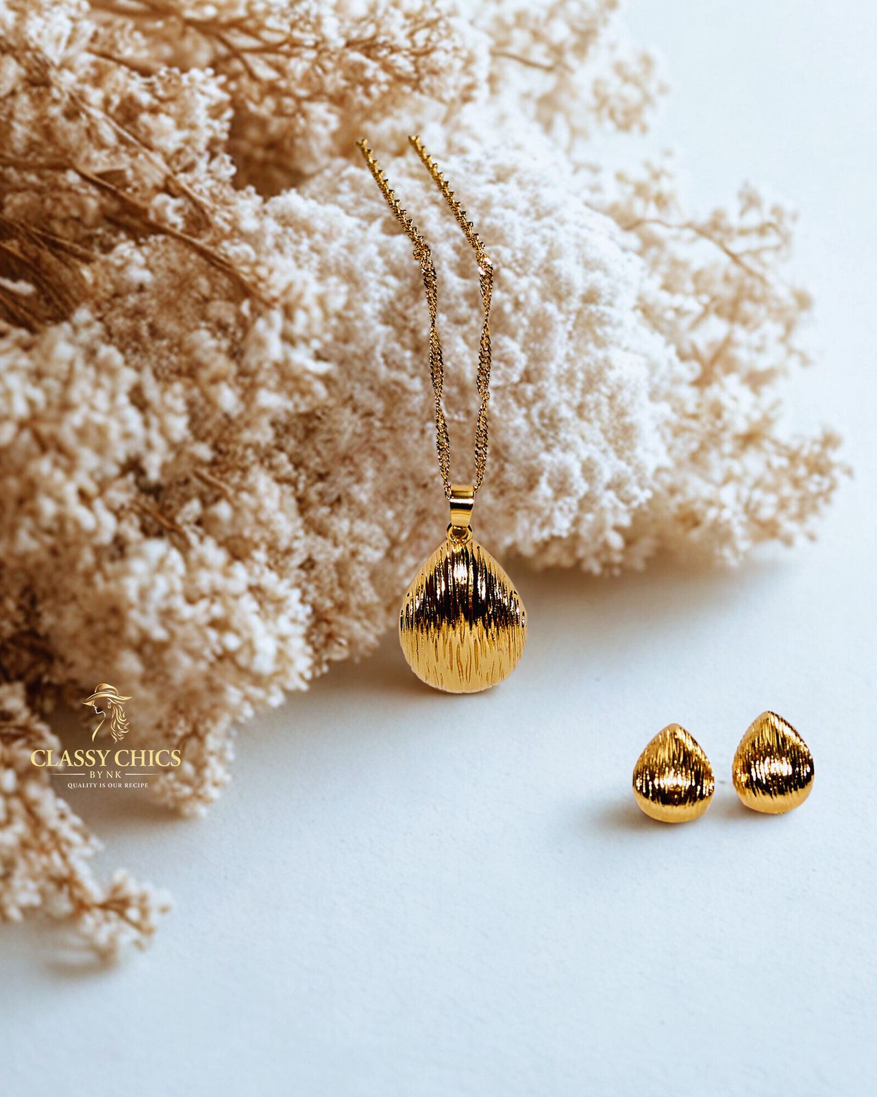 10k gold plated necklace and earrings. Very good for simple looks