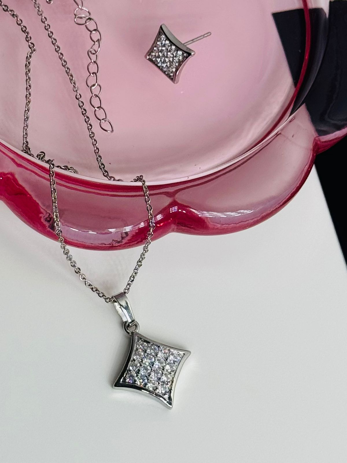 A refined silver-tone necklace featuring a star pendant set with sparkling crystals. Sleek, elegant, and lightweight, it’s perfect for a simple look.