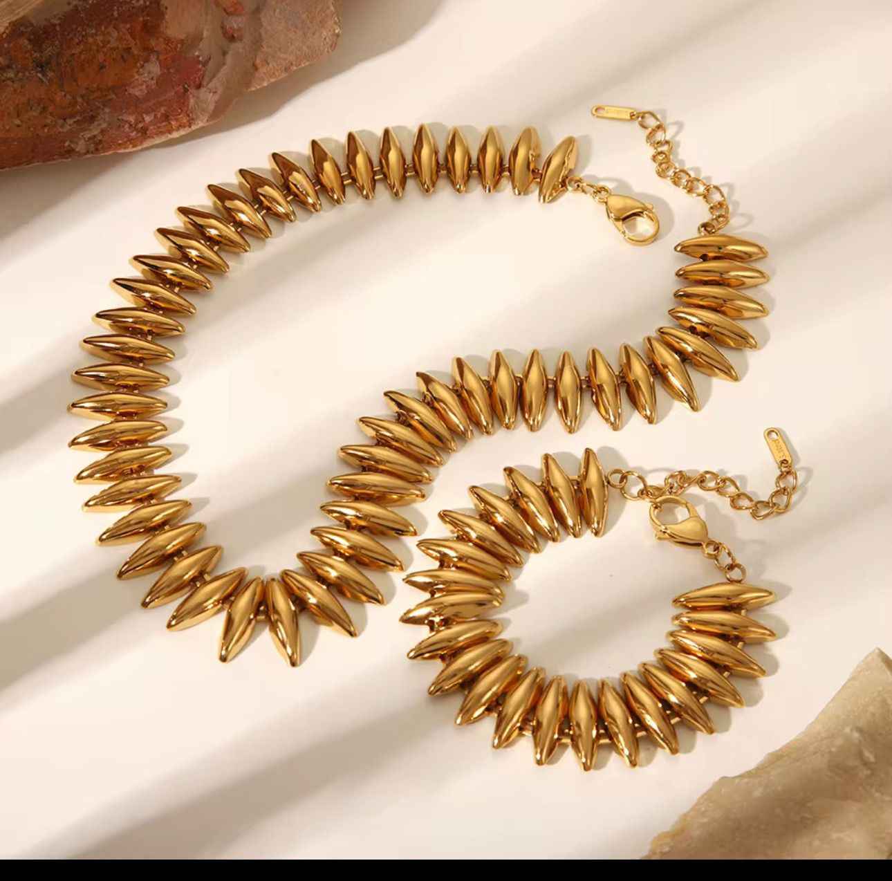18k Gold-plated stainless-steel necklace for your bold looks. Necklace and bracelet are adjustable.