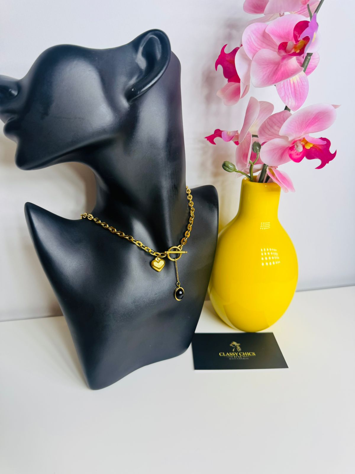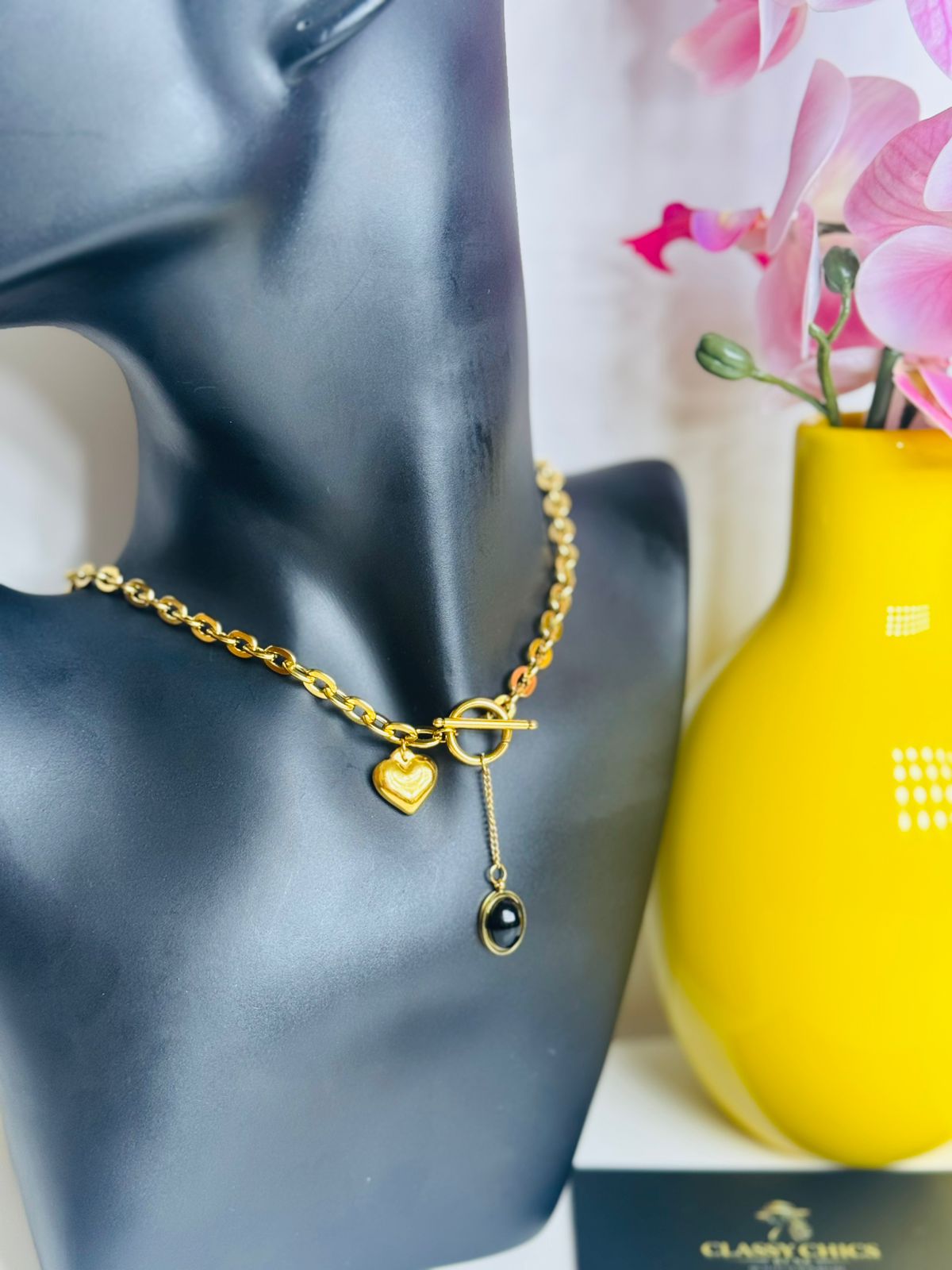 Short Buckle stainless Steel necklace with heart pendant. Very stylish and durable