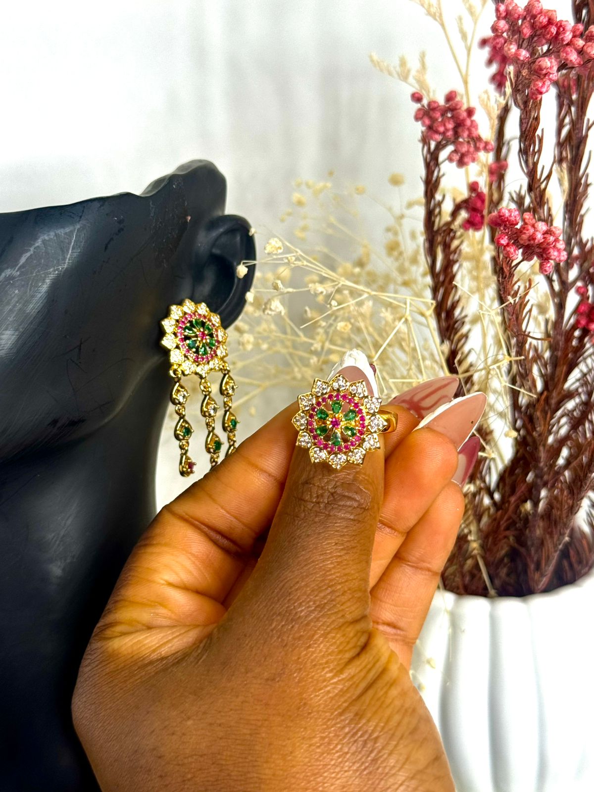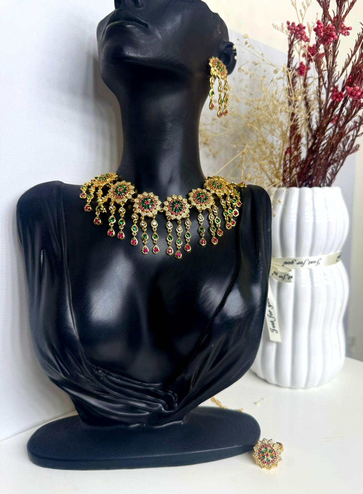 Necklace is long enough to fit anyone and can be worn as a choker or fall off necklace With full multicolored zircon stones.. This multicolored set will elevate your appearance and make you stand out.